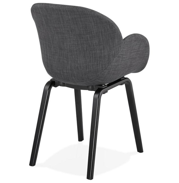 Chaise design scandinave à accoudoirs 'Readblack' en tissu gris anthracite avec 4 pieds en bois noir