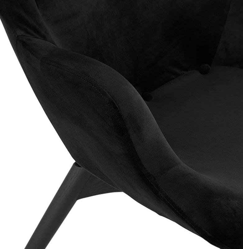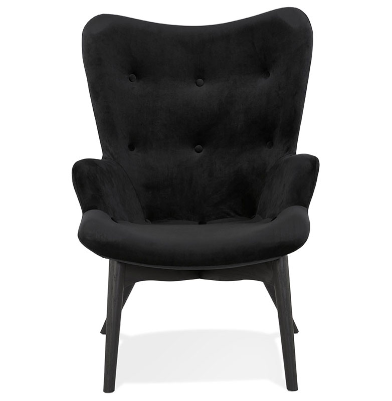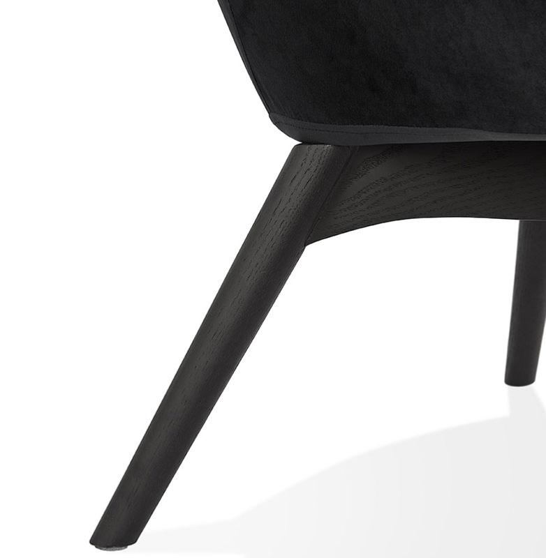 Fauteuil à oreilles capitonné design 'ELEGAN' en velours noir et pieds en bois de chêne noir