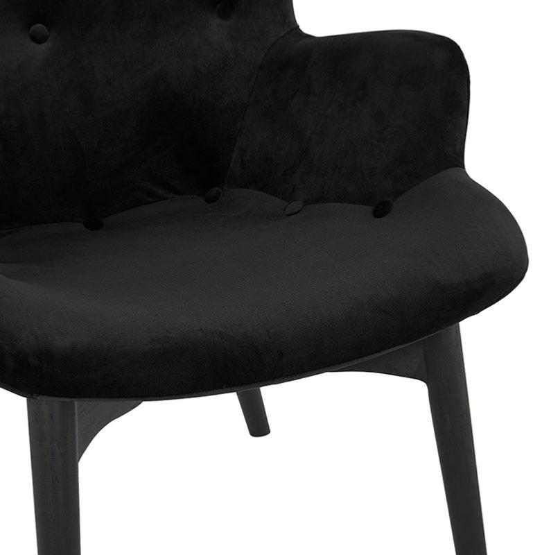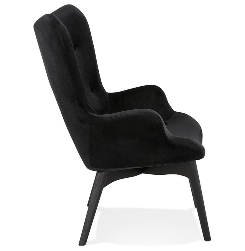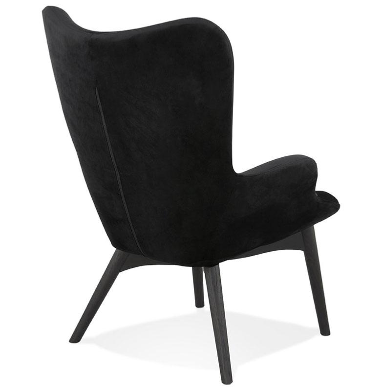 Fauteuil à oreilles capitonné design 'ELEGAN' en velours noir pieds en bois noir
