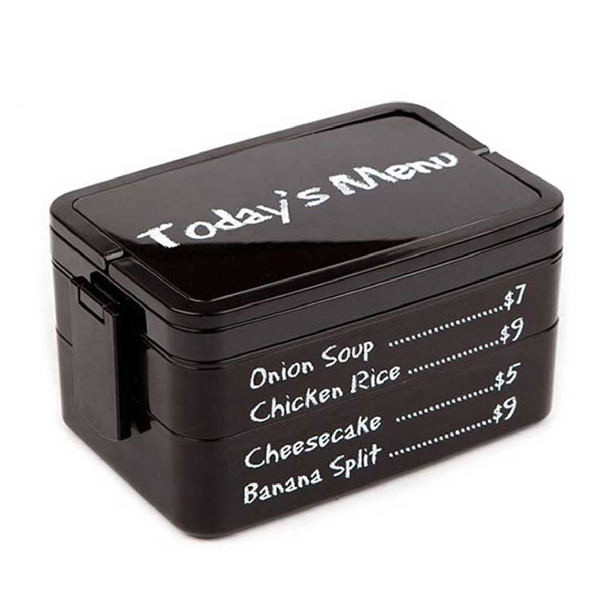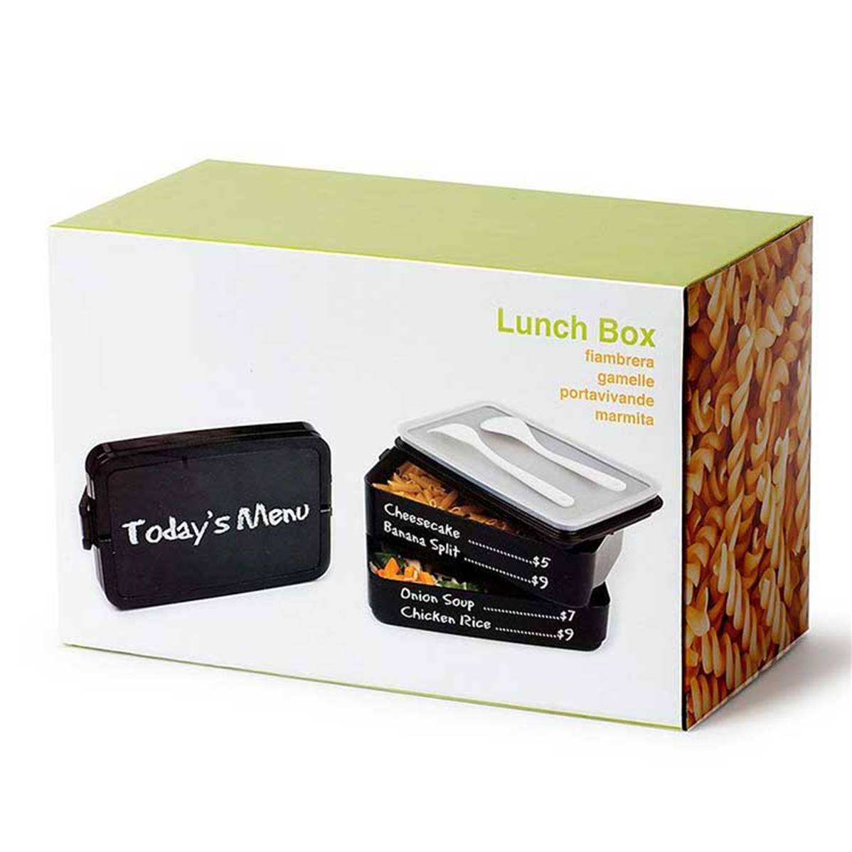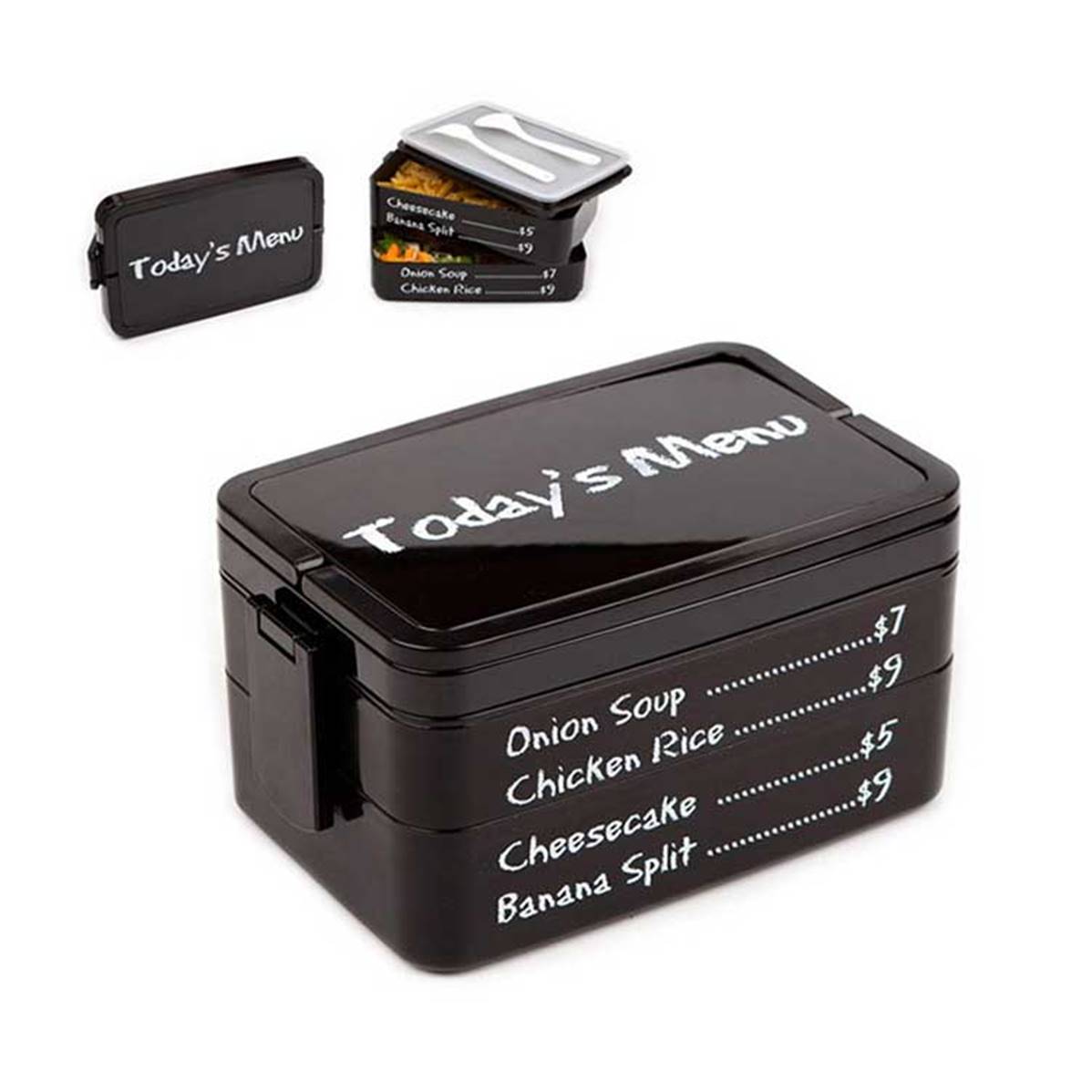 Cette mallette est composée de 2 étages, si vous le souhaitez un pour le salé, et un autre pour le sucré. Les couverts sont inclus. La mallette passe au micro-ondes sans le couvercle.